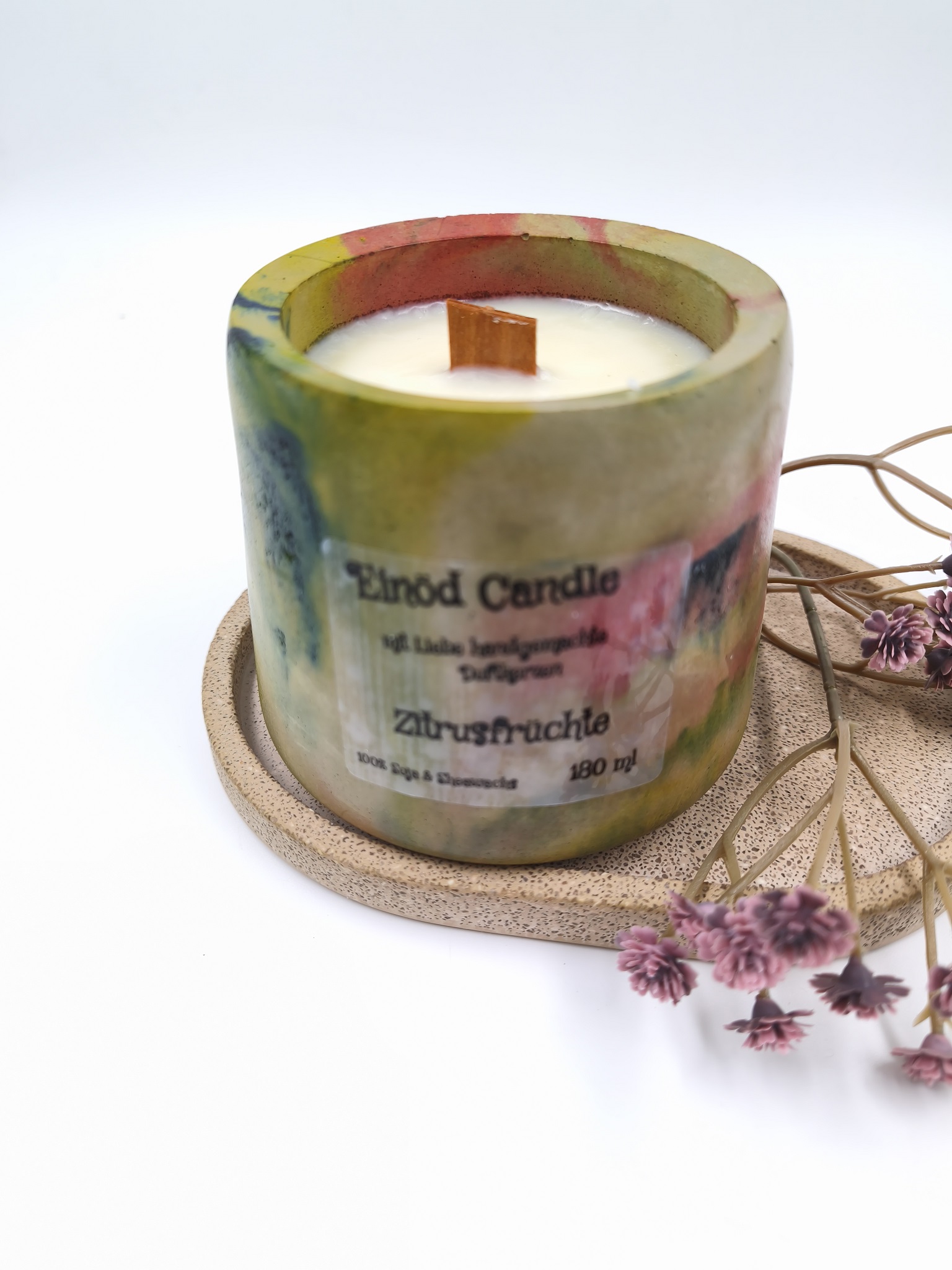 Sowohl die Kerze als auch der Betonbehälter werden von uns handgefertigt, jede Kerze ist ein Unikat