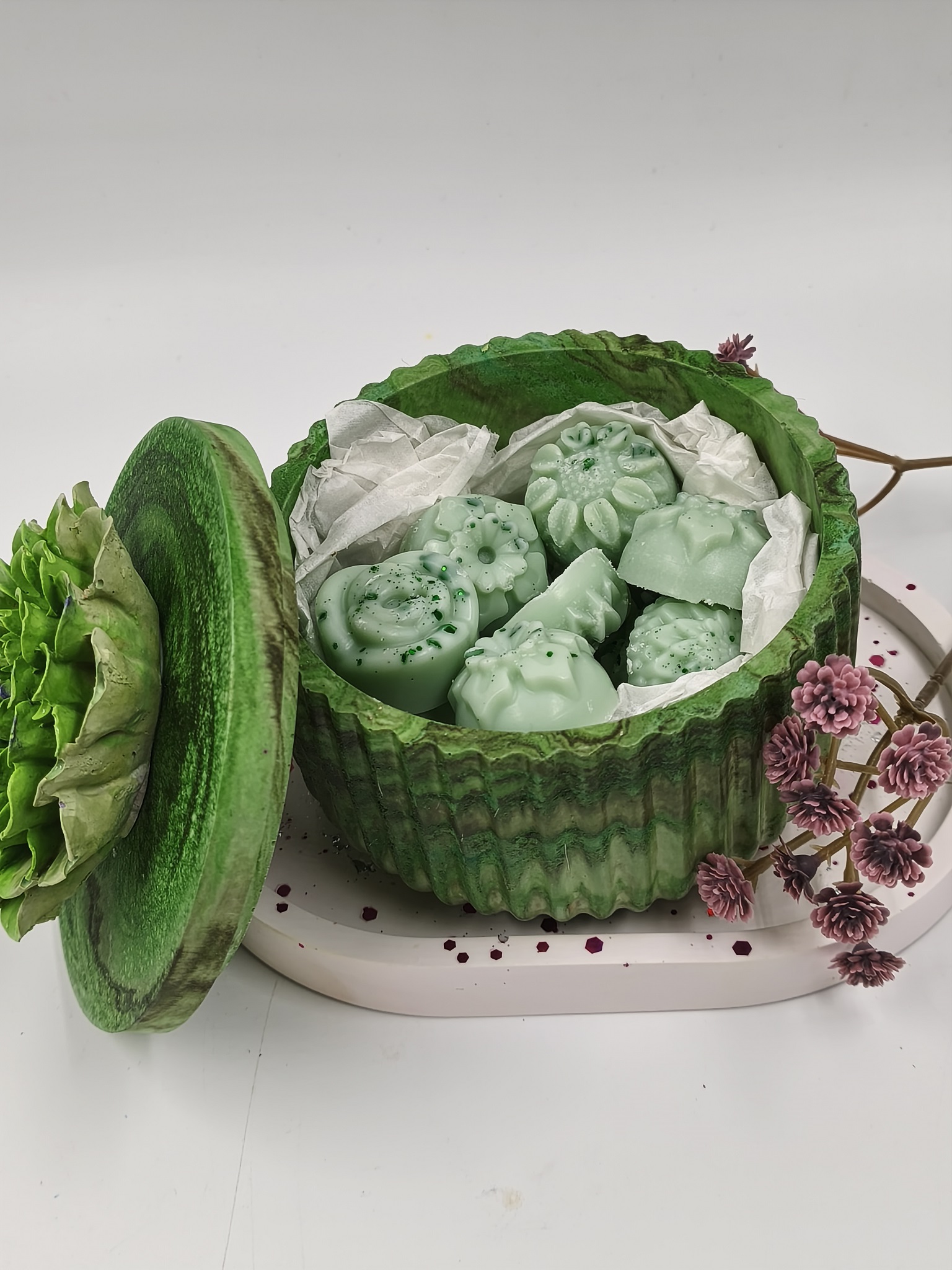 Hier habe ich ein handgemachtes Deko Döschen aus Gießmasse